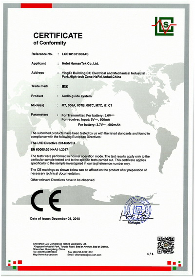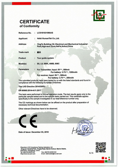 自助講解設(shè)備CE證書